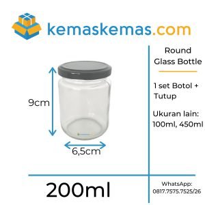200ml Botol Toples Kaca Round Screw Cap / Jar Kaca Bulat + Tutup