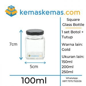 100ml Botol Kaca Square Jar Kaca Kotak Jar Saffron + Tutup